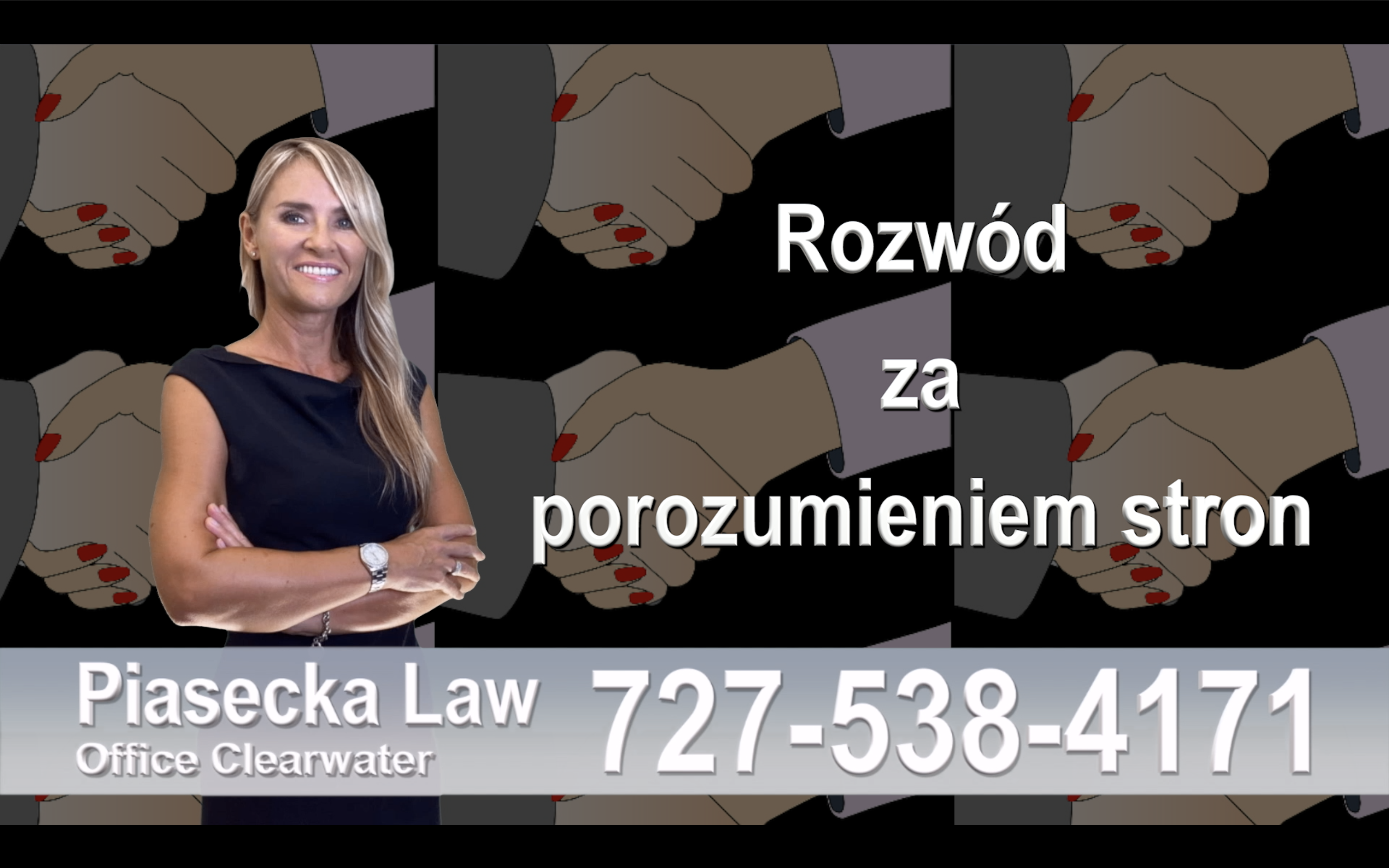 Agnieszka „Aga” Piasecka jest również adwokatem rozwodowym w Clearwater na Florydzie. Ma doświadczenie w rozwodach za porozumieniem, rozwodach bezspornych oraz rozwodach konfliktowych. Adwokat rozwodowy w Clearwater, Agnieszka Piasecka, posiada wiedzę i doświadczenie potrzebne do uzyskania jak najlepszych rezultatów dla swoich klientów. Prawnik rozwodowy w Clearwater, Agnieszka Piasecka, oferuje BEZPŁATNĄ pierwszą konsultację w sprawach rozwodowych w Clearwater na Florydzie.